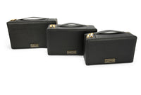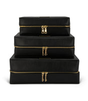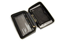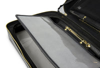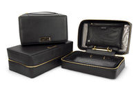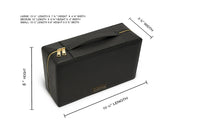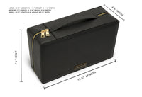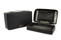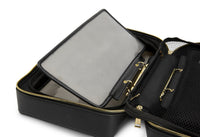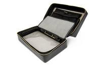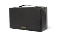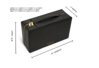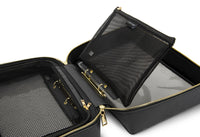 This rich black vegan leather traveler is conveniently compact. Its lightweight and fit shape lined with our honeycomb TAK technology will organize all your beauty essentials neatly in place WITHOUT allowing your items to shift in transit. It is also the perfect daily makeup bag to stay organized.